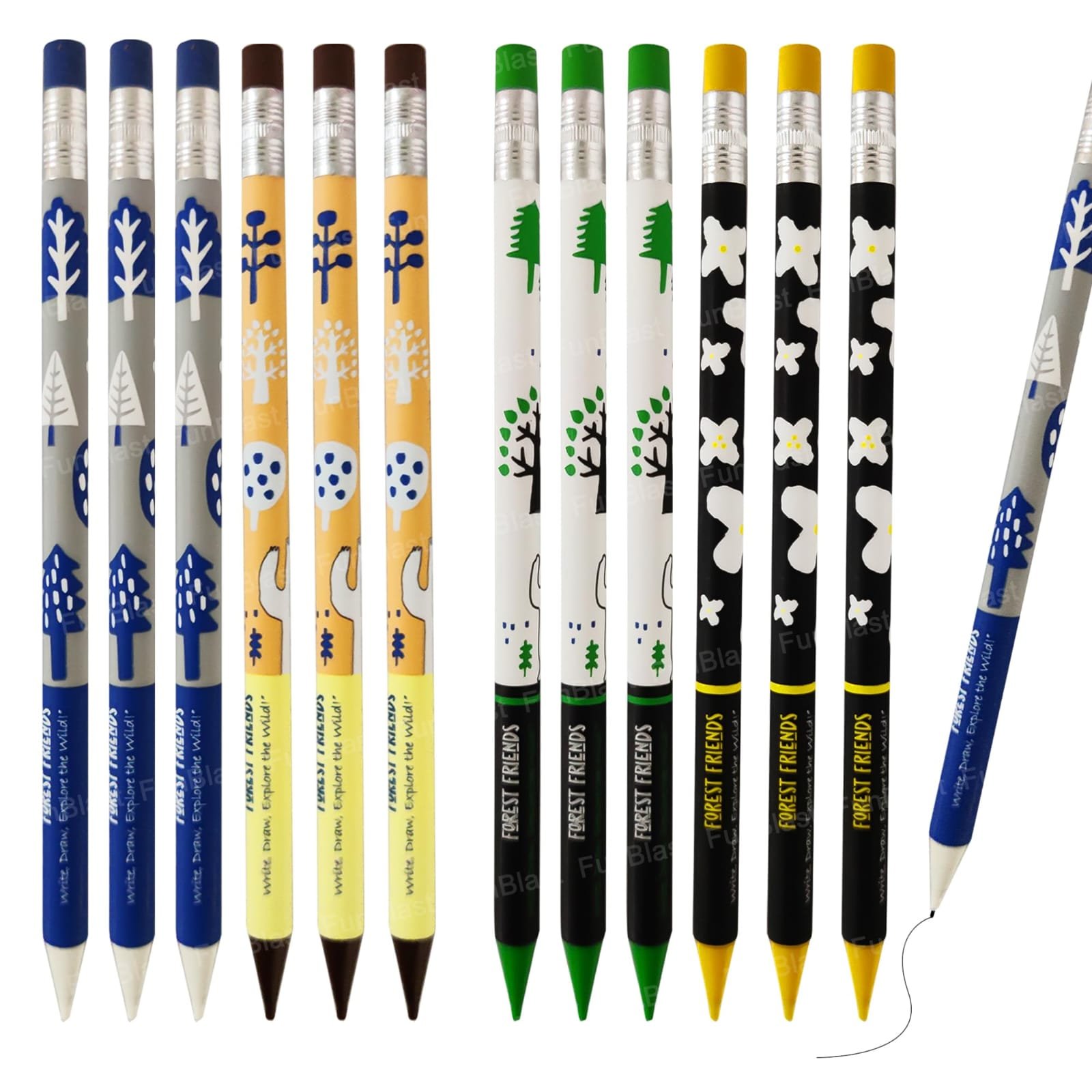 - An eraser tip is included on each pencil.