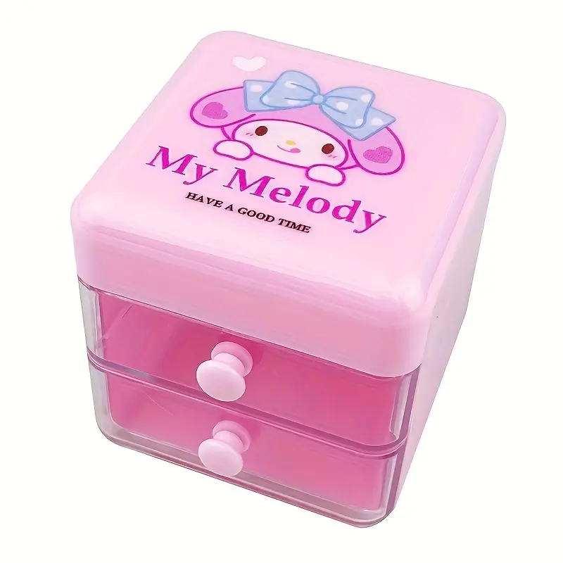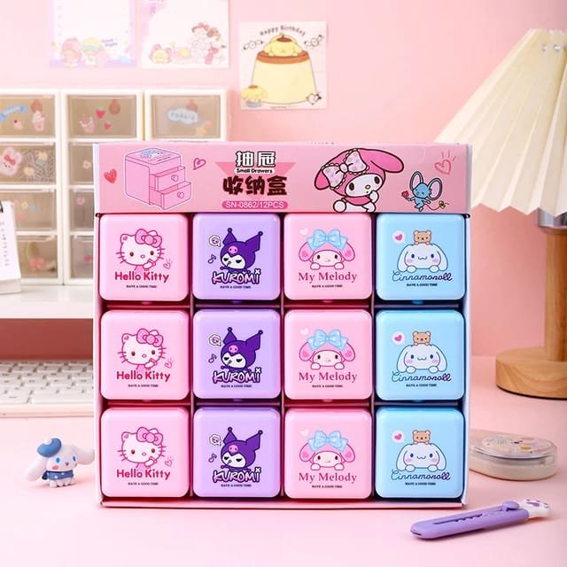 These are Sanrio-themed mini desktop storage drawers, designed for organizing small items like stationery or jewelry.