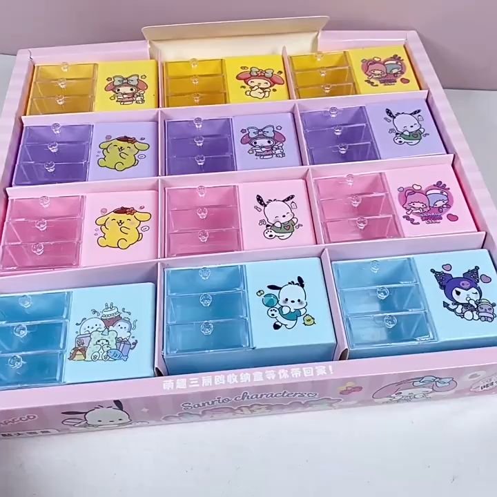 These are Cartoon themed mini desktop organizers, specifically designed for stationery, jewelry, or makeup storage. Each unit features a combination of three small transparent drawers and a larger side compartment that doubles as a pen holder.