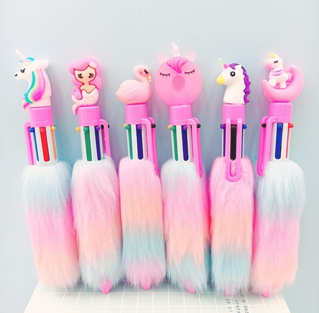 Multicolor unicorn plush ballpoint pens
